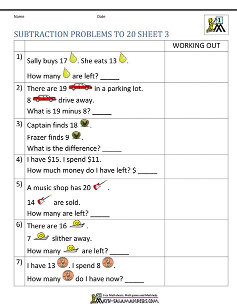 1st Grade Subtraction Word Problems from www.math-salamanders.com