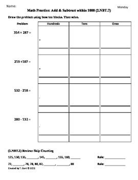 These worksheets cover double digit addition and subtraction as well as triple digit addition and. Add and subtract within 1000, using concrete models or drawings and strategies based on place value,. Web this is a worksheet that i use for homework.