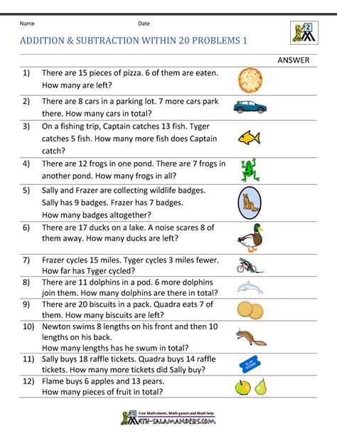 Web This Educational Activity Provides Word Problems With Manipulatives For Kids To Practice Adding And Subtracting Within 20.
