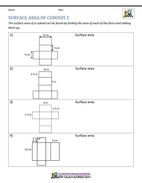 Discover A Collection Of Free Printable Math Worksheets Tailored For Grade 6 Students To Enhance Their Understanding Of Surface Area Concepts.