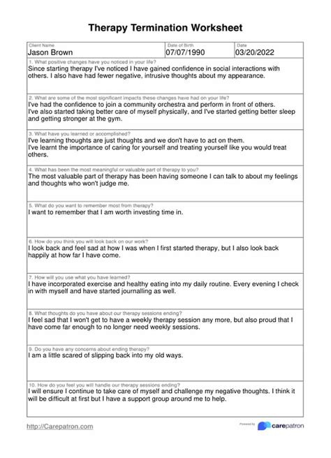 Web therapy termination is the moving to the end of theory, or ending the therapy. Web therapy termination worksheet carepatron date of birth date powered by 1. Ensure you handle the end of their sessions with care using our therapy termination calculator.